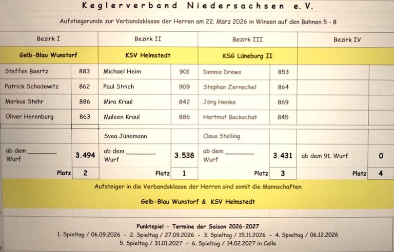 Aufsteiger in die Verbandsklasse Niedersachsen: KSV Helmstedt und Gelb-Blau Wunstorf